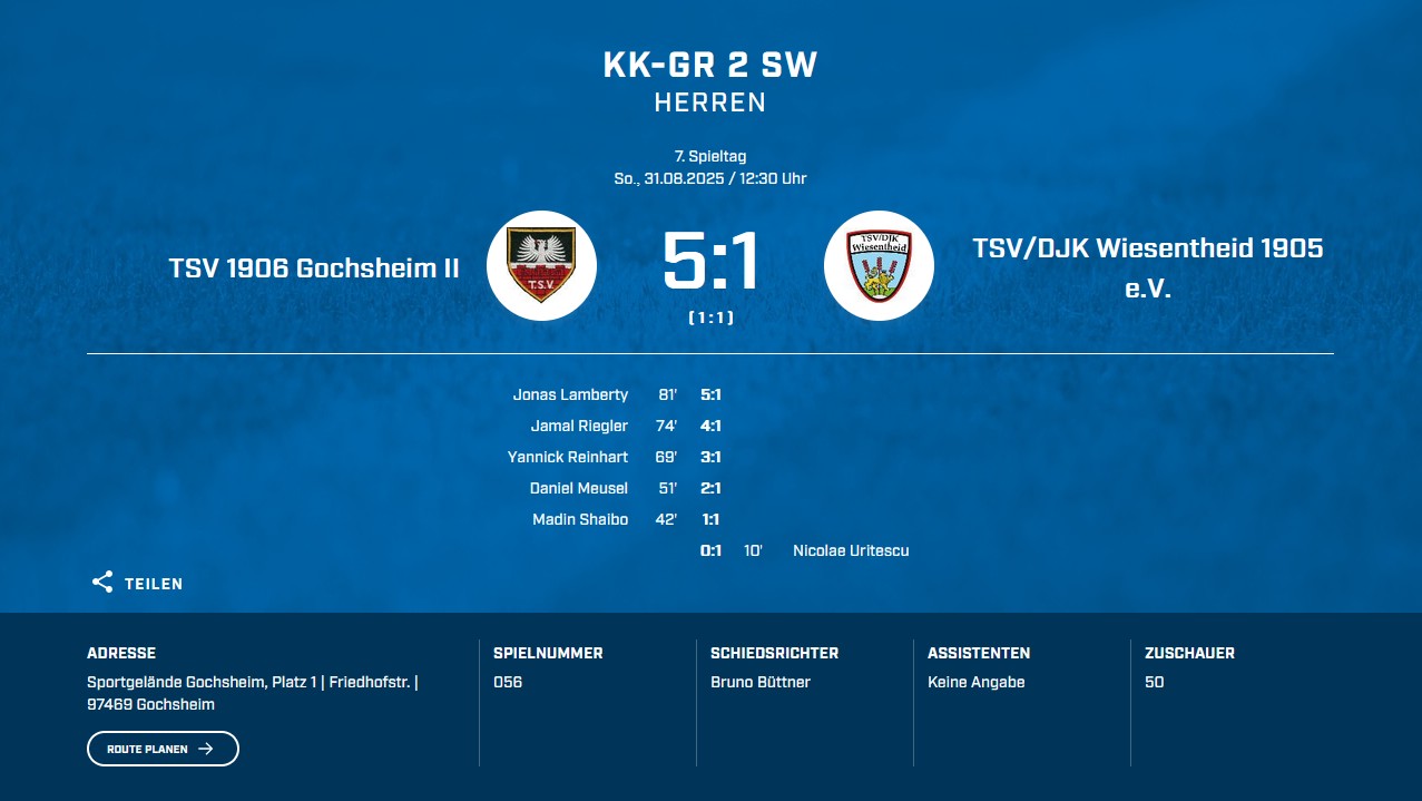 KK-Gr 2 SW: TSV 1906 Gochsheim II – TSV/DJK Wiesentheid, 5:1 (1:1)